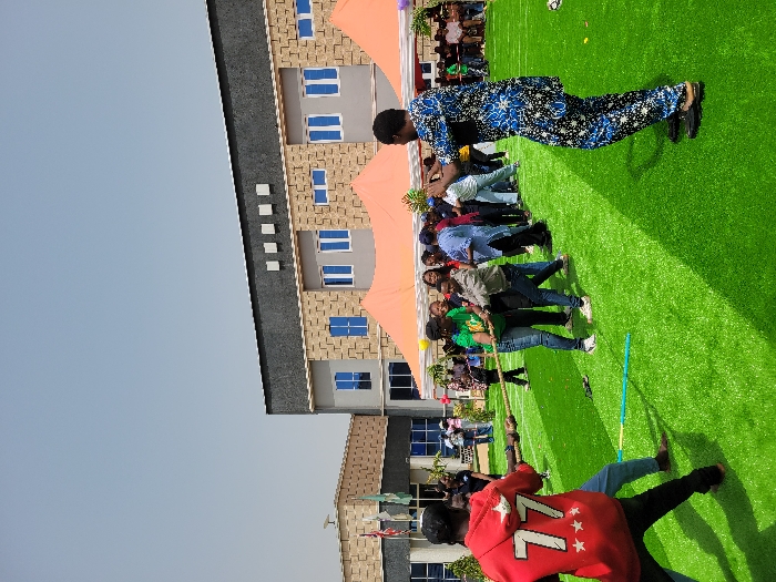 The image depicts an outdoor recreational event in Jos, Nigeria, under a clear sky