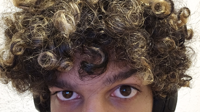 - "A close-up, headshot-style image captures the upper portion of an individual's face, primarily showcasing their eyes, eyebrows, and voluminous curly hair" by FM-pDwWG2, licensed under CC BY 4.0