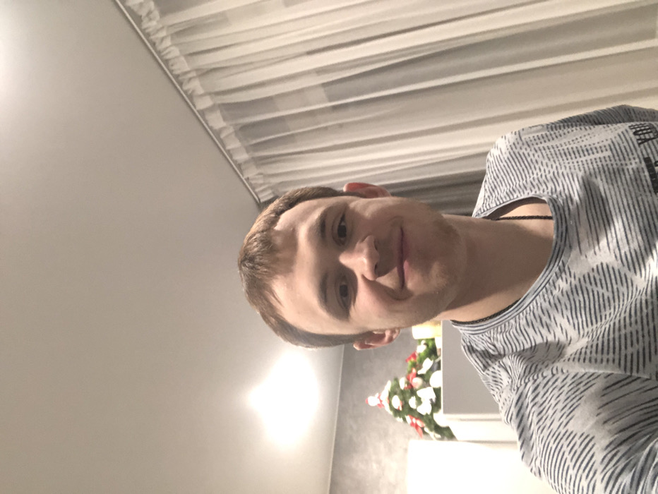 An indoor scene, presumably in Tlustenkhabl, Russia, features a young adult male taking a selfie-style photograph