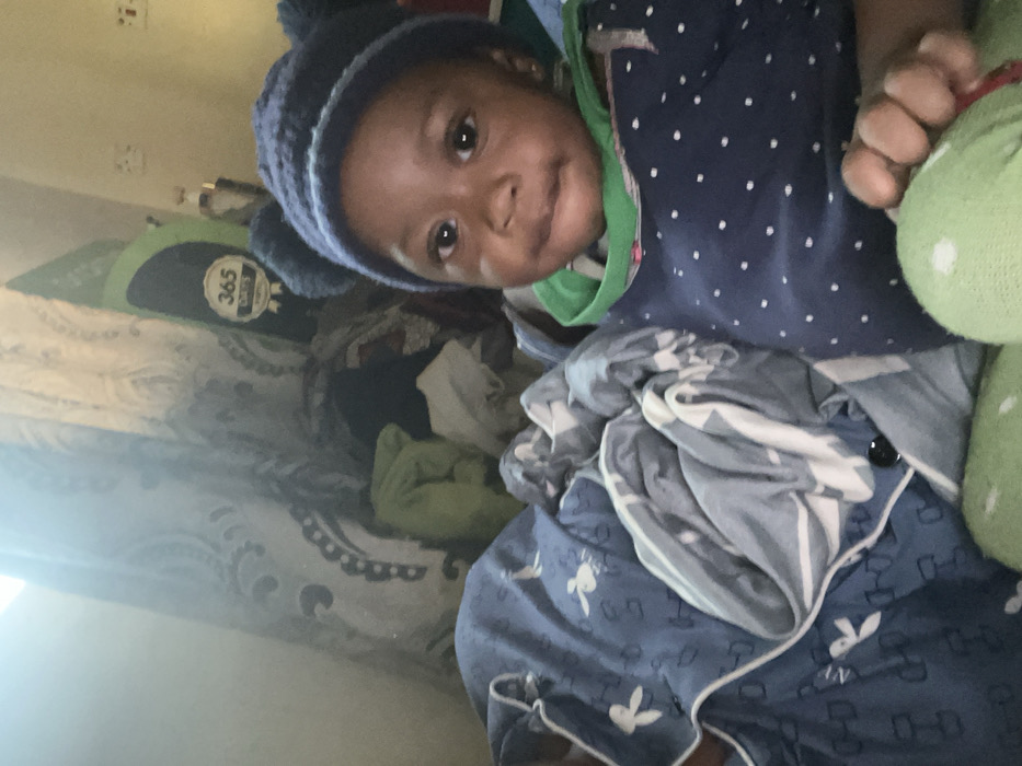 - "A baby with a navy blue, polka-dotted shirt and a matching, knitted hat adorned with pom-poms is lying on a bed" by FM-ZN9rc2, licensed under CC BY 4.0
