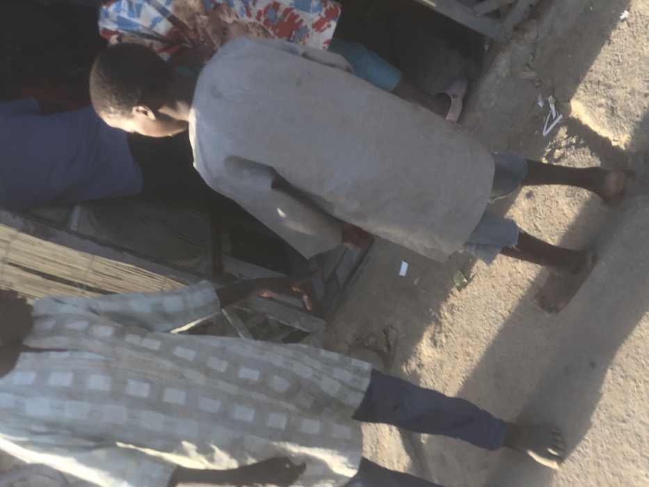 The scene is an outdoor setting in Dutsinma B, Nigeria, under strong sunlight