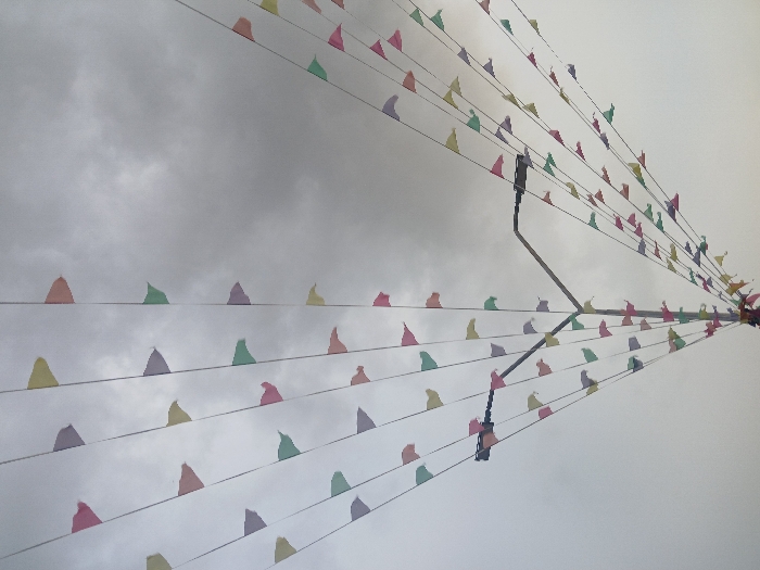 - "A low-angle shot showcases strings of colorful triangular flags stretched tautly against a cloudy sky" by FM-YF5w12, licensed under CC BY 4.0