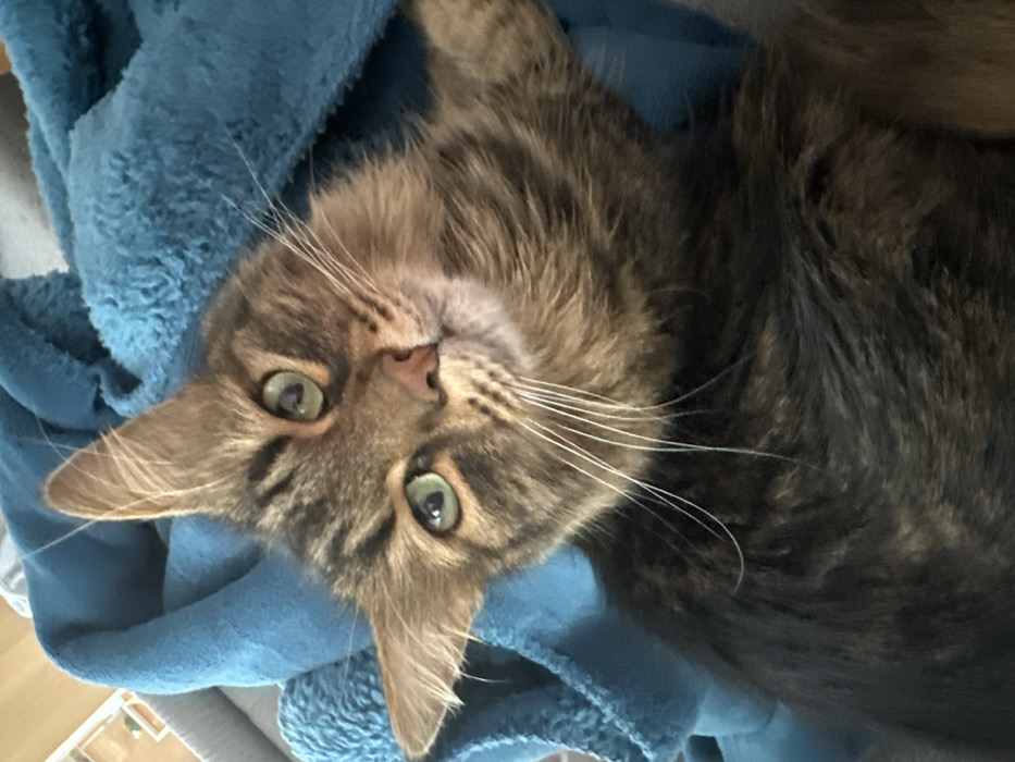 - "A close-up, indoor photograph features a tabby cat with brown, black, and tan patterned fur" by FM-GVzNi2, licensed under CC BY 4.0
