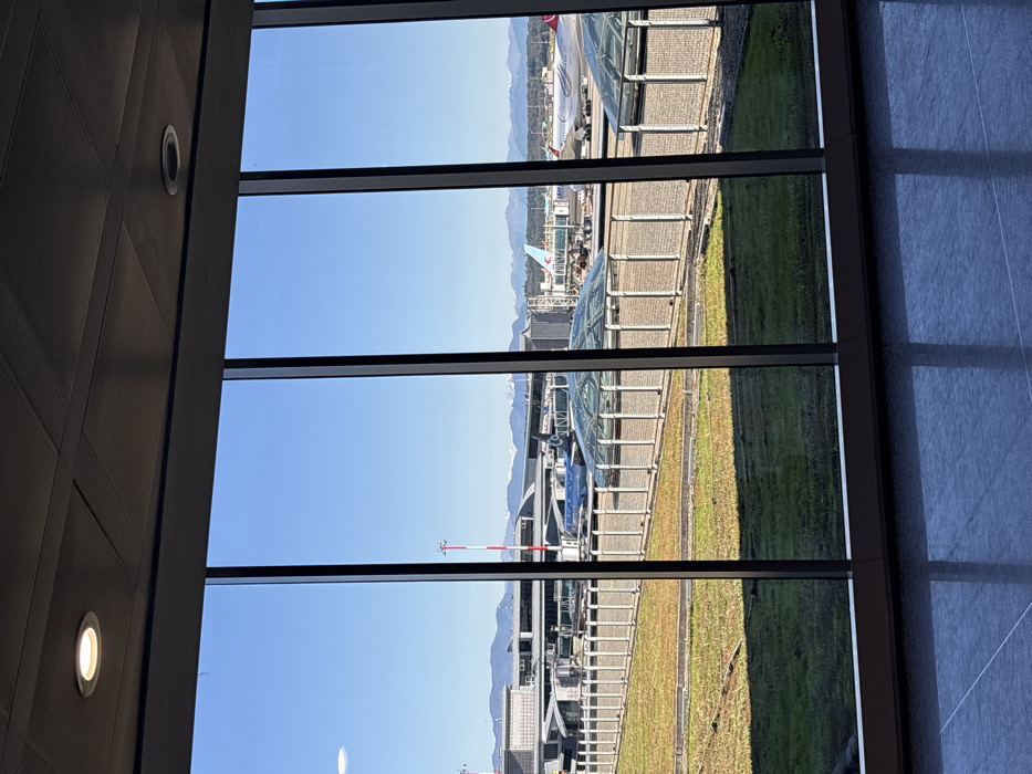 - "The image depicts an exterior view from inside a modern airport terminal at Milan Malpensa Airport (MXP) in Ferno, Italy, observed through large, vertical, dark-framed windows" by FM-mfRp53, licensed under CC BY 4.0