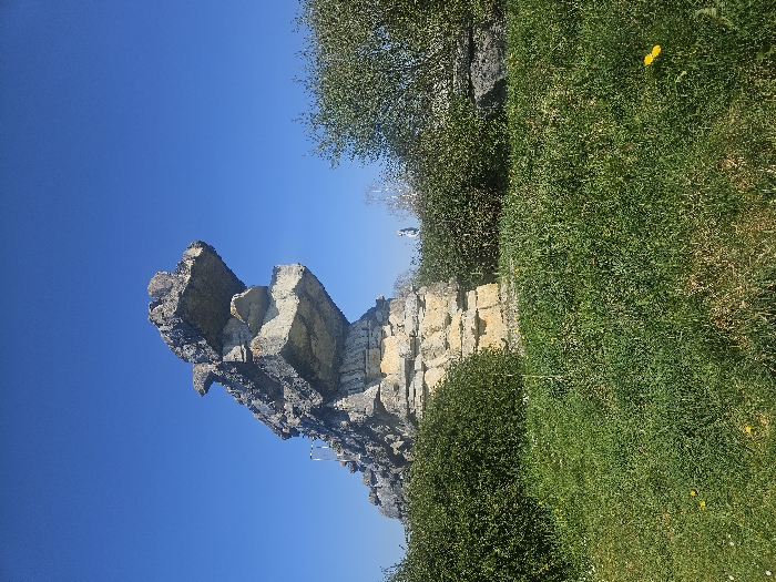 - "The image depicts a large, abstract stone sculpture resembling a dragon, situated outdoors in Ger, France, under a clear blue sky" by FM-bCw3N2, licensed under CC BY 4.0