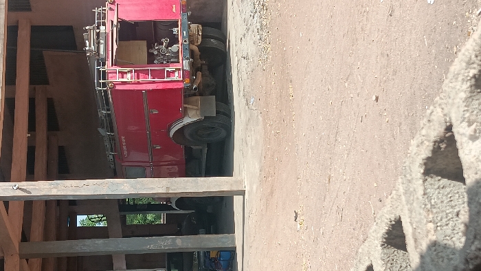 - "This image, taken in Langtang, Nigeria, depicts a red fire truck partially parked under an open-sided, wooden-beamed structure" by FM-6rqTj2, licensed under CC BY 4.0