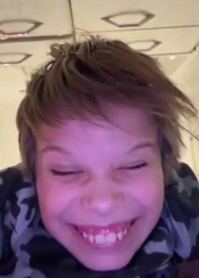 The video is a close-up shot of a young boy's face