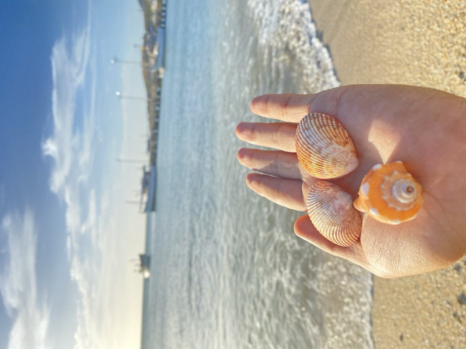 - "A human hand holds three seashells on a sandy beach in Juan Griego, Venezuela" by FM-YwVSA2, licensed under CC BY 4.0