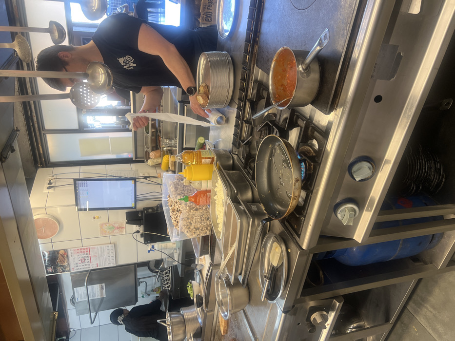 The image depicts an active commercial kitchen in Sofia, Bulgaria