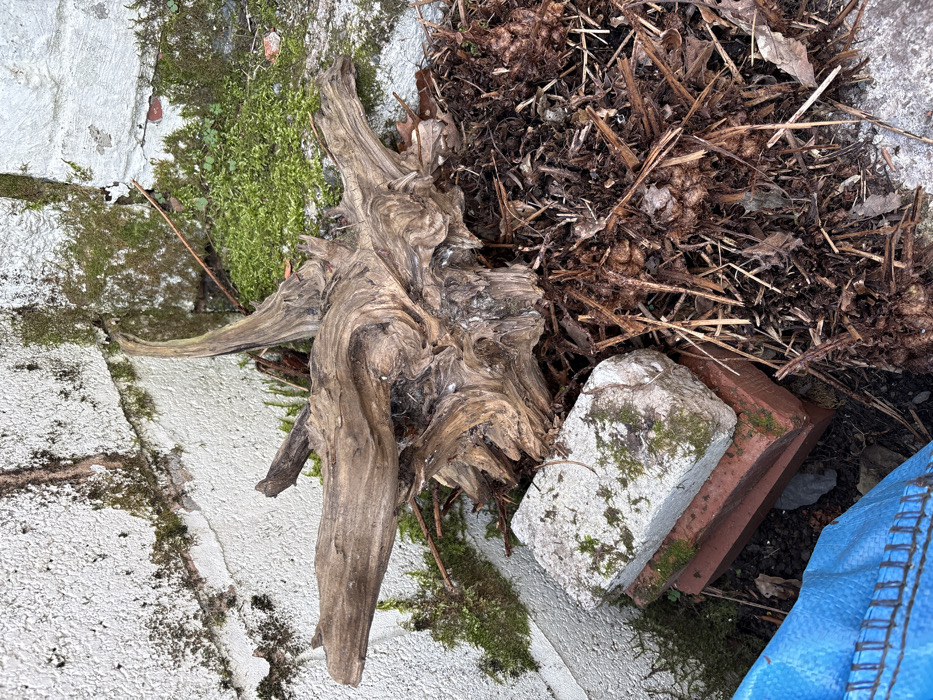 - "This image displays an outdoor scene in Snailbeach, United Kingdom, featuring a prominent, light brown, weathered piece of driftwood with intricate, gnarled contours and multiple projections" by FM-RPcgE2, licensed under CC BY 4.0