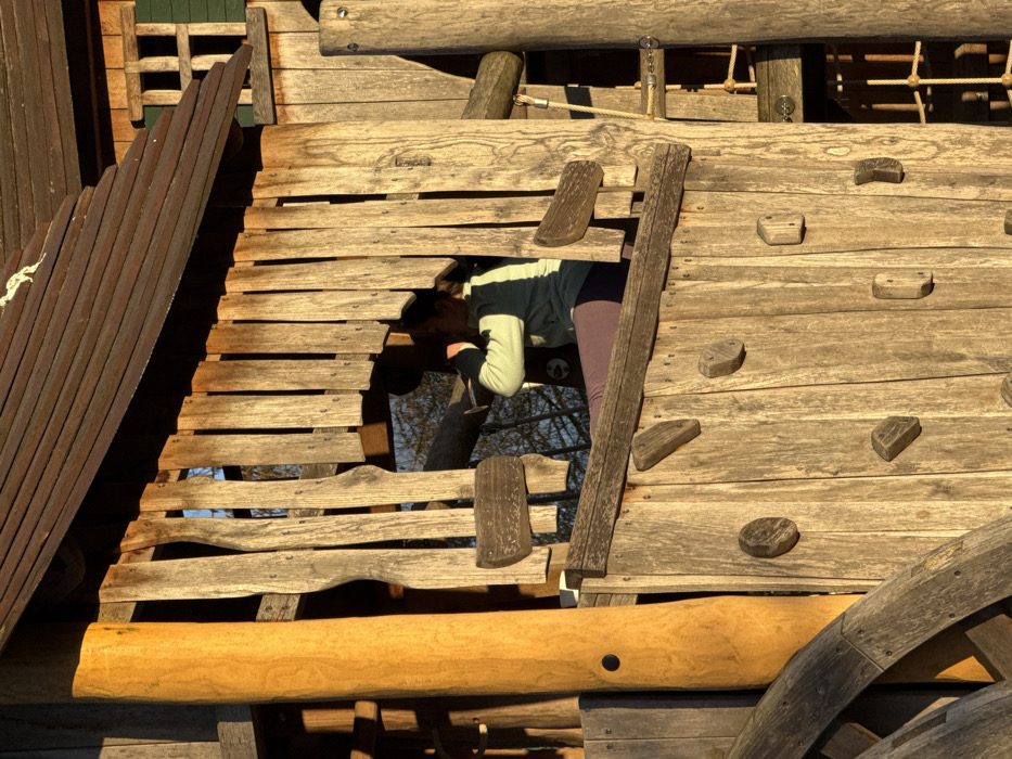 - "The image depicts a wooden playground structure, located in Olingen, Luxembourg, illuminated by strong, warm-toned sunlight" by FM-H0rwJ2, licensed under CC BY 4.0