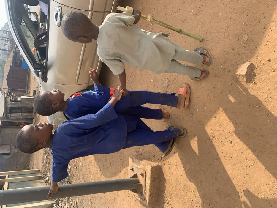 - "Three young boys stand on a reddish-brown dirt path in Egbedi, Nigeria, under direct sunlight, casting distinct shadows" by FM-NEBU82, licensed under CC BY 4.0
