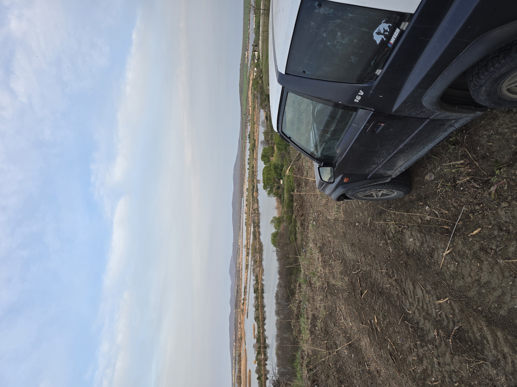 black and white Suzuki Vitara parked on a dirt path overlooking a landscape in the Burgas area, Bulgaria