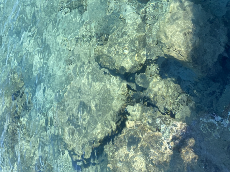 - "An overhead photograph displays clear, shallow aquamarine seawater covering a rocky seabed in Skala, Greece" by FM-1GLuK2, licensed under CC BY 4.0
