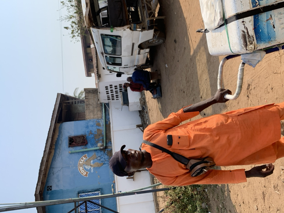 - "An outdoor daytime scene in the city of Oyo, Nigeria, features a young adult male in the foreground, facing right and looking slightly forward, pulling a white wheeled cart" by FM-zmDt63, licensed under CC BY 4.0