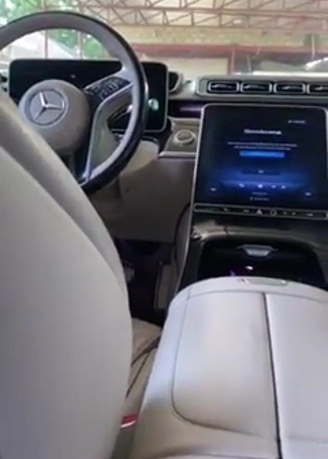 The video presents the interior of a Mercedes Maybach, focusing primarily on the luxurious rear seating area