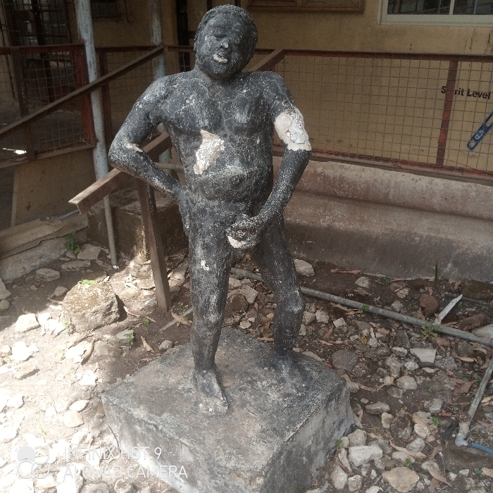 - "The image displays an outdoor scene in the city of Duk, Nigeria, centered on a dark, textured, anthropomorphic statue standing on a square concrete pedestal" by FM-9xBKu2, licensed under CC BY 4.0