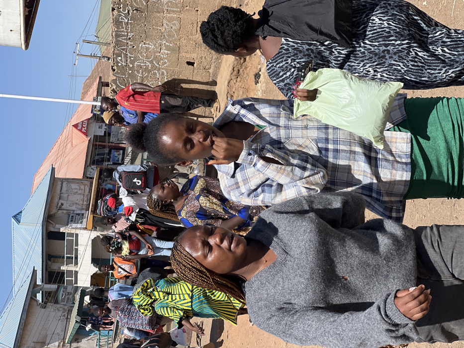 The image depicts a crowded outdoor scene in Bukuru, Nigeria, characterized by bright daylight and direct sunlight