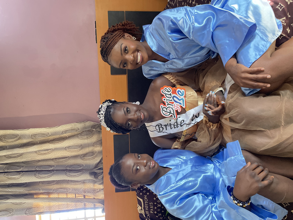 - "Three young adult women are seated closely together in an indoor setting, likely a bedroom, in the city of New Stadium, Nigeria" by FM-2cWZX2, licensed under CC BY 4.0