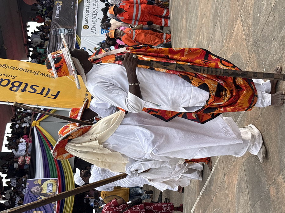 The image captures an outdoor ceremonial event in Lagos, Nigeria, identified by a banner reading "LAGOS STATE GOVT
