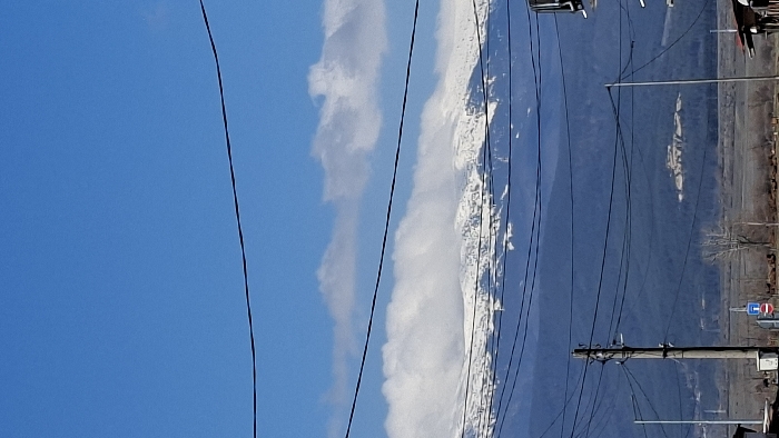 - "The image displays a vertical outdoor scene featuring a snow-capped mountain range under a clear blue sky with scattered white clouds" by FM-aGSx13, licensed under CC BY 4.0