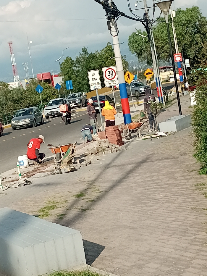 - "Construction workers repair a brick sidewalk next to a road with passing vehicles" by FM-GeBdt2, licensed under CC BY 4.0