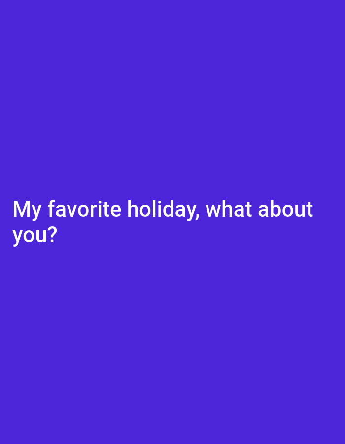 - "A dark purple background displays the text "My favorite holiday, what about you?" in white" by FM-IKO9B3, licensed under CC BY 4.0