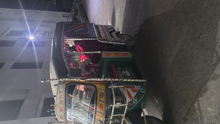 - "An auto-rickshaw is depicted parked on a paved surface at night in Madhuban, India" by FM-70rZN2, licensed under CC BY 4.0