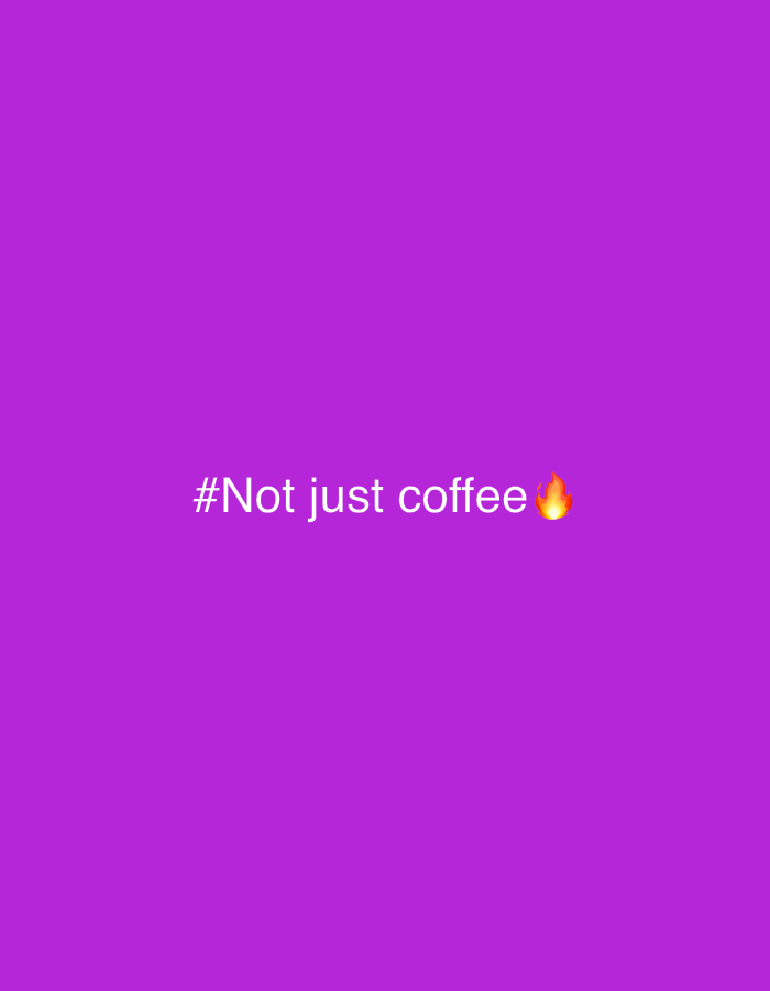 The scene presents a digital display or an illuminated poster featuring a solid deep purple background, situated within a commercial establishment in Oba-Aboji, Nigeria. Centrally positioned, white sans-serif text reads "#Not just coffee". Adjacent to the right of this text, a vibrant orange and yellow fire emoji is displayed. The entire frame is dedicated to this graphic, with no individuals, additional objects, or surrounding environmental details visible, indicating a direct capture of the display itself.