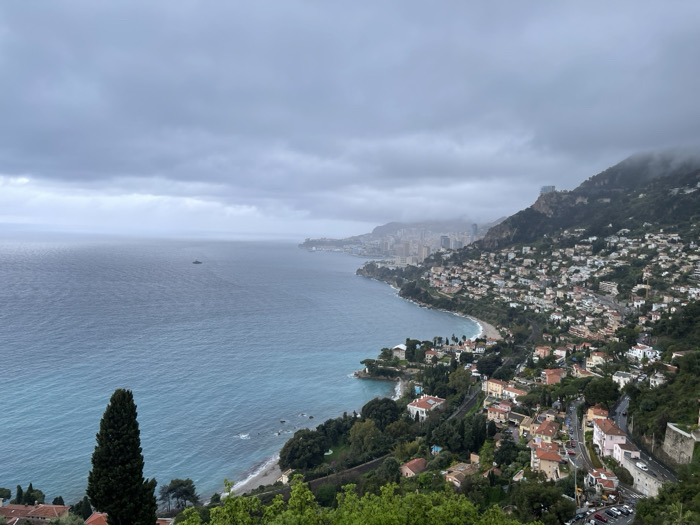 panoramic view of the Mediterranean coastline from the town of Roquebrune-Cap-Martin, France