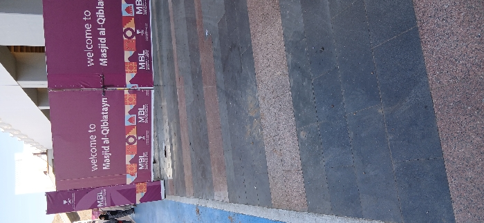 - "The image depicts an outdoor scene at the entrance to Masjid al-Qiblatayn in Medina, Saudi Arabia" by FM-DHzUs1, licensed under CC BY 4.0