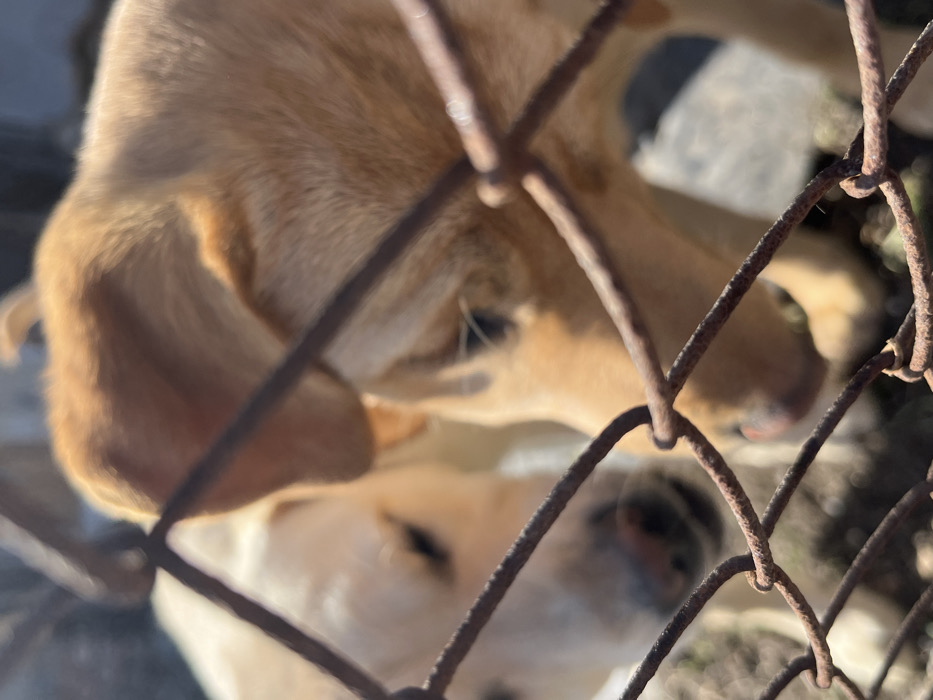 - "The scene, set in the city of Bulgarovo, Bulgaria, depicts two dogs positioned behind a rusty, brown chain-link fence that occupies the foreground and is largely out of focus" by FM-ufW5l2, licensed under CC BY 4.0