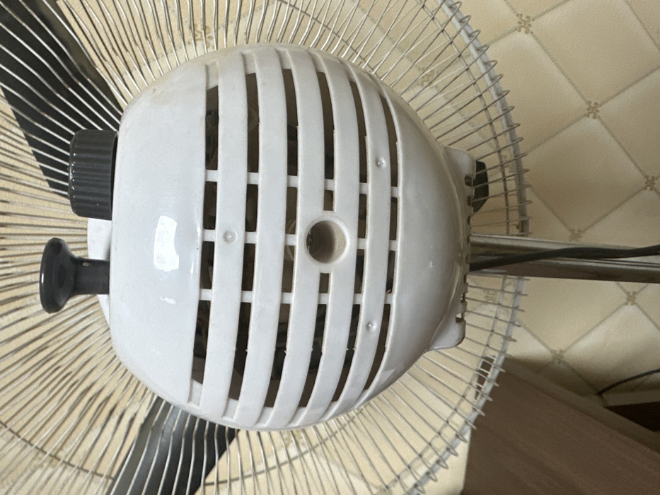 - "The image displays the central section of a white electric pedestal fan, located indoors in Shaba, Nigeria" by FM-w9j6l1, licensed under CC BY 4.0