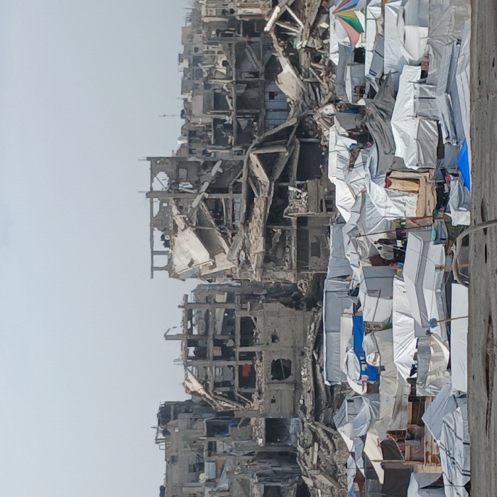 - "The image displays an urban environment in the City of Gaza, Palestinian Territory, characterized by extensive destruction and a temporary settlement" by FM-lJnzj1, licensed under CC BY 4.0
