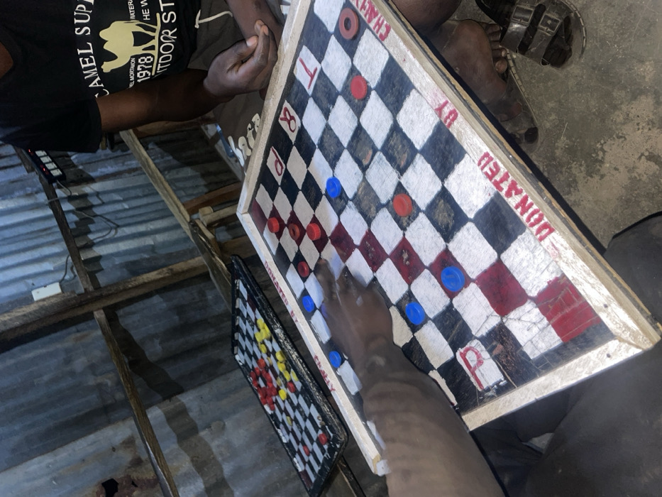 - "The image depicts two individuals engaged in a game of checkers within a shelter in Jos, Nigeria" by FM-KFrzk2, licensed under CC BY 4.0