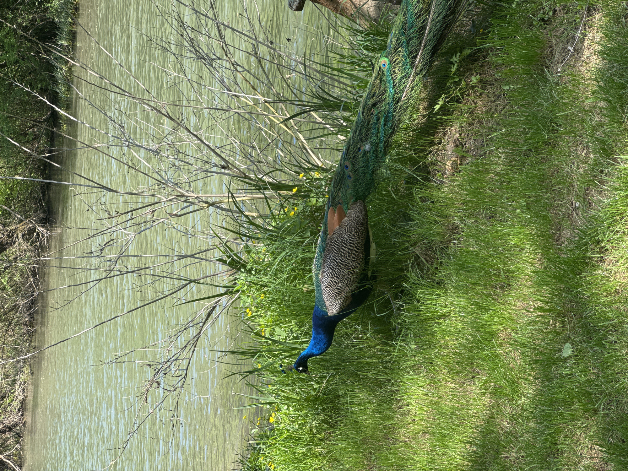 - "A peacock is standing on a grassy bank near a body of water" by FM-FtAbd2, licensed under CC BY 4.0