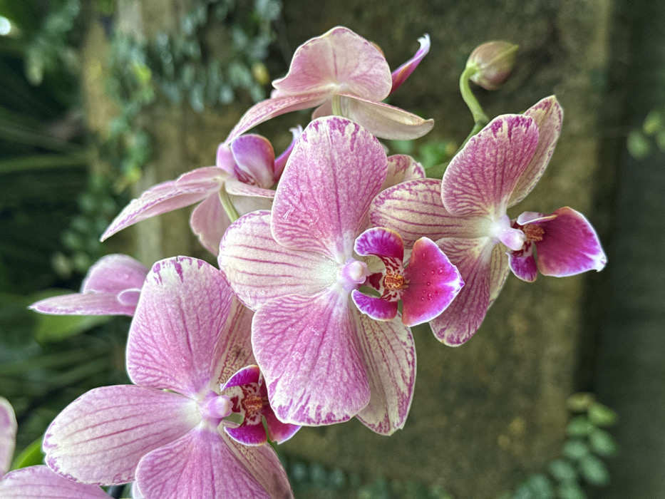 - "The image displays a close-up of six Phalaenopsis orchids, five in full bloom and one unopened bud, arranged on a single stem" by FM-JPlZT2, licensed under CC BY 4.0