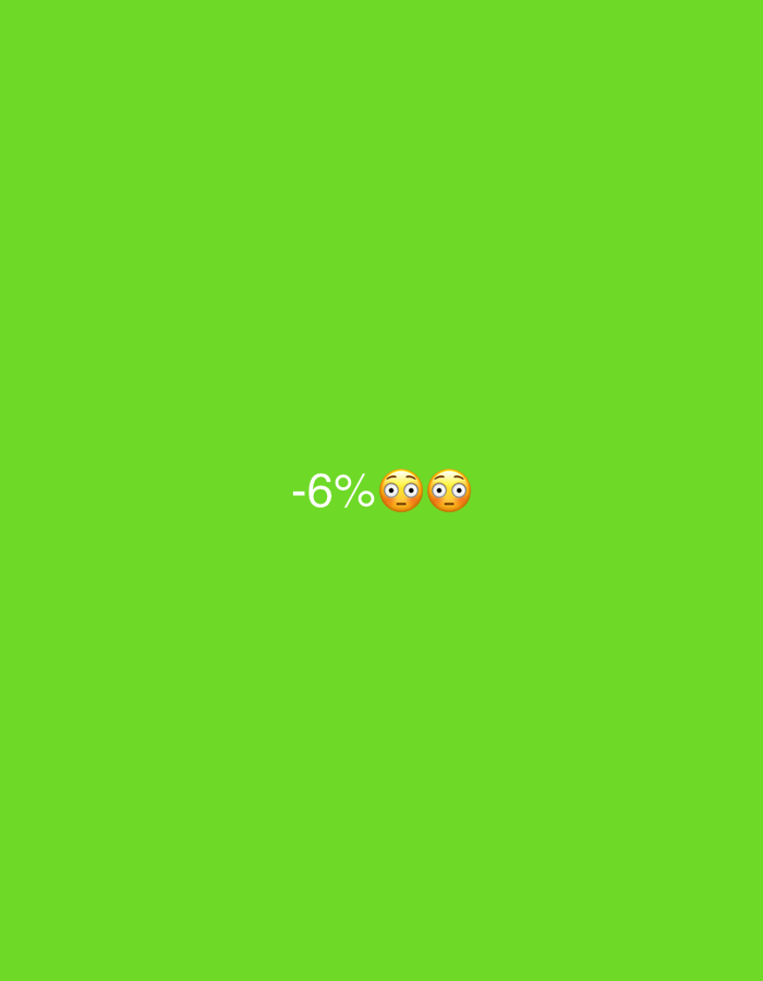 A green background displays "-6%" followed by two shocked-face emojis. The emojis are positioned to the right of the percentage. The text and emojis are centered on the image.