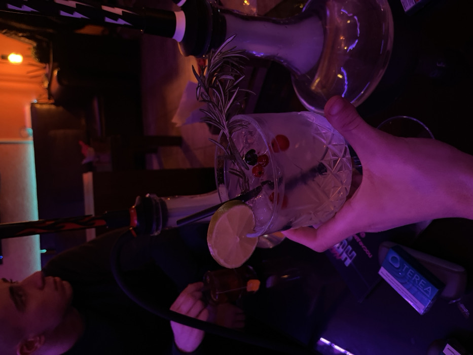 The image captures an indoor scene within a dimly lit establishment, consistent with a bar or lounge, located in Varna, Bulgaria