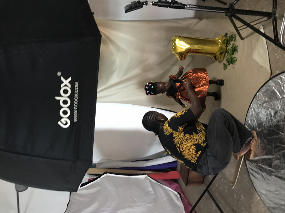 This image depicts an indoor photography studio session in Gura Top, Nigeria