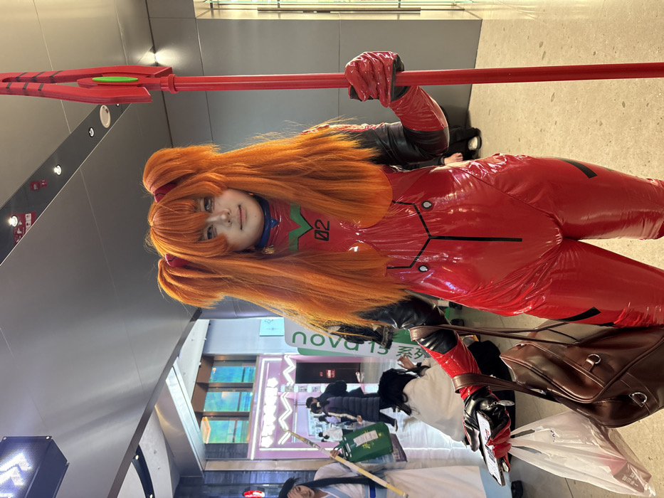 A person cosplays as Asuka Langley Soryu from Evangelion