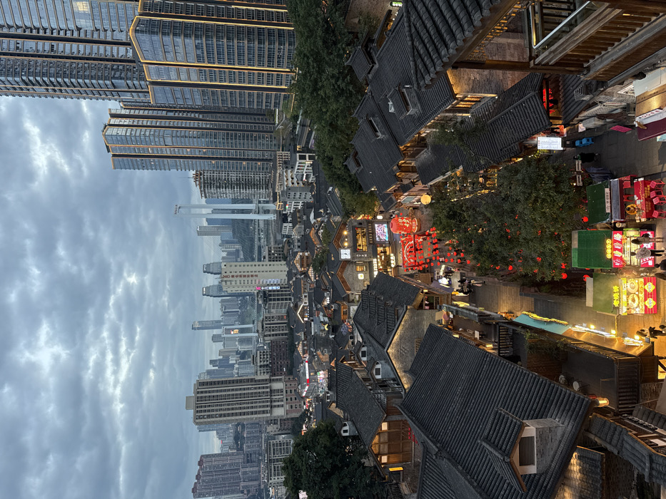 - "An aerial high-angle view depicts the Hongyadong Folk Culture Village in Yuzhong District, Chongqing, China, under an overcast sky at dusk or evening" by FM-yNGMq2, licensed under CC BY 4.0