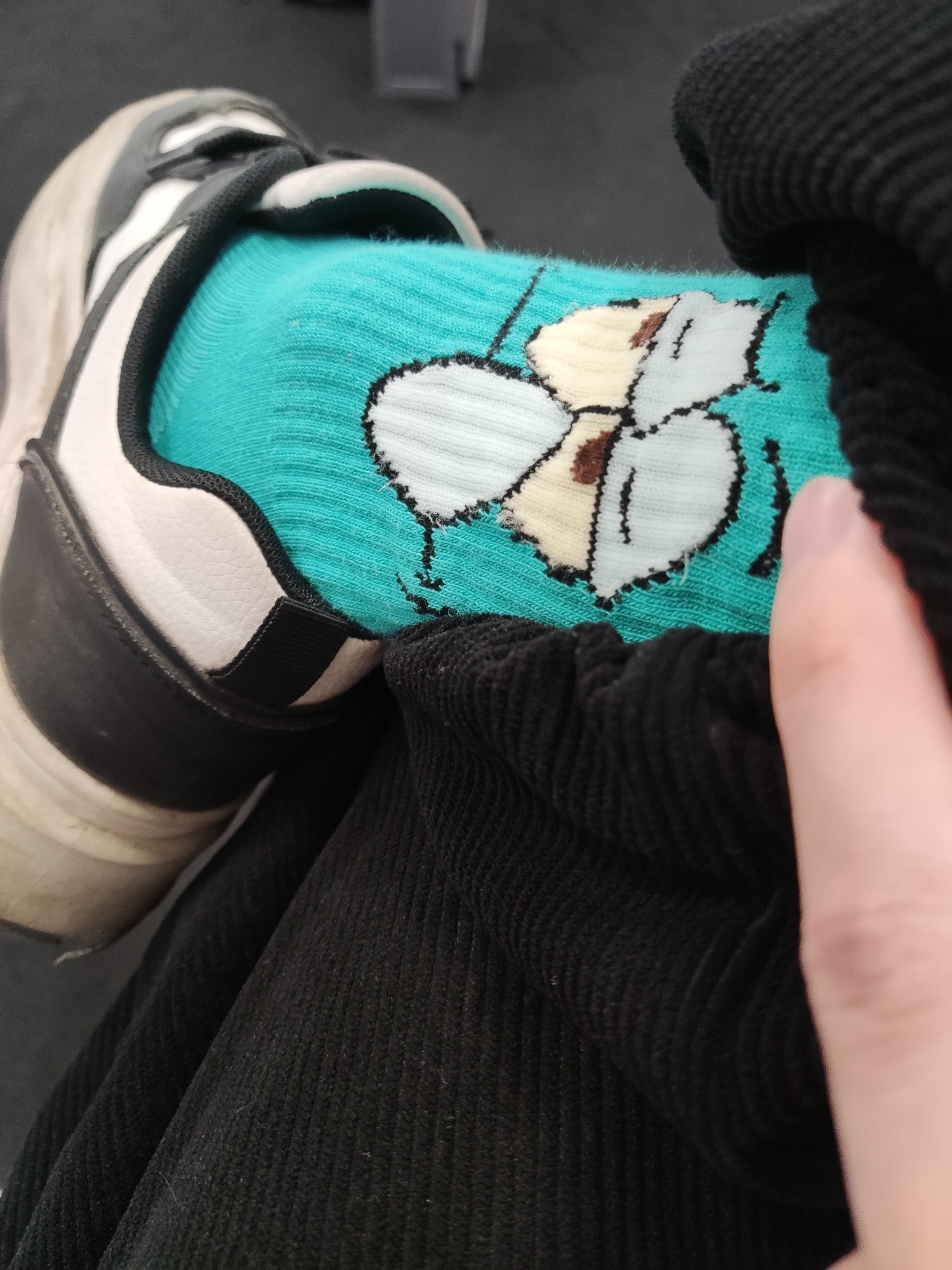 - "This image shows a person's foot wearing a turquoise sock with a Snoopy design" by FM-oYe0j2, licensed under CC BY 4.0