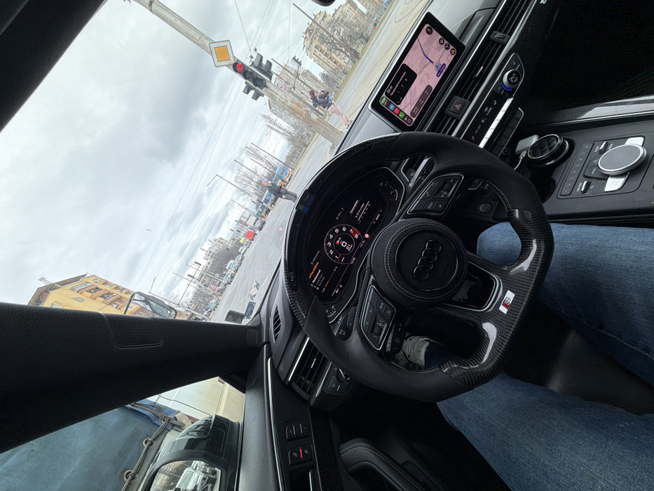 - "The image captures the interior of an Audi S-line vehicle from the driver's perspective, stationary at an urban intersection in Sofia, Bulgaria, under an overcast sky" by FM-EN7Kj1, licensed under CC BY 4.0