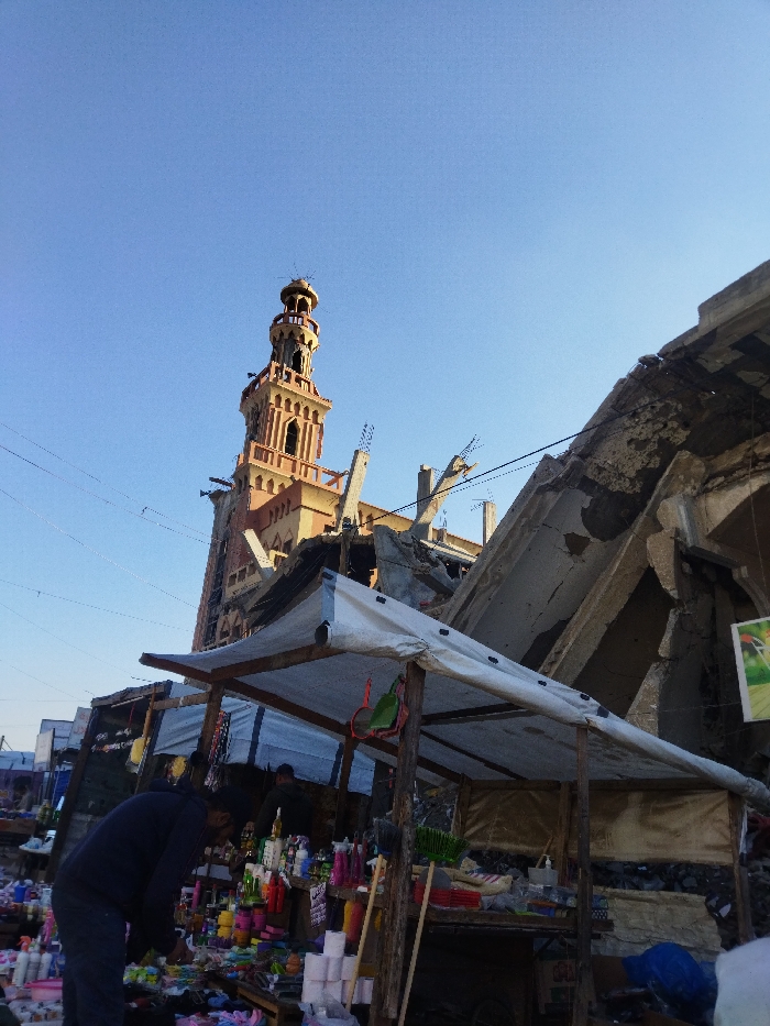 - "The image depicts an active street market in Khan Yunis, Palestinian Territory, set against a backdrop of severe structural damage" by FM-AOrI72, licensed under CC BY 4.0