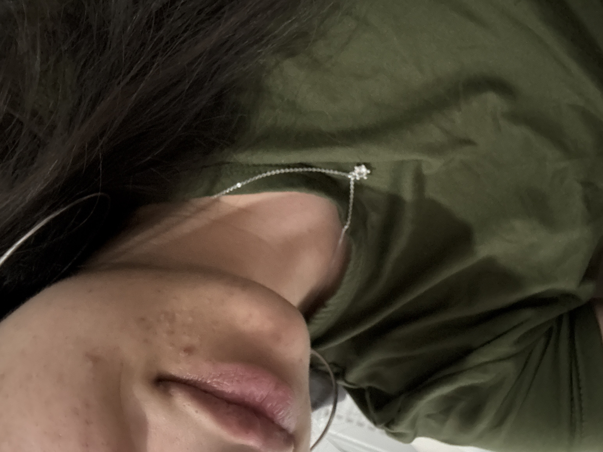 Close-up view of a person's face angled towards the camera, likely a selfie perspective