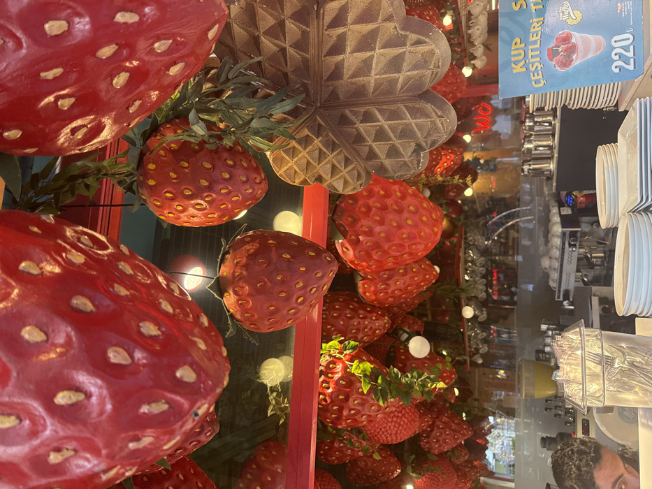 - "The image depicts the interior of a dessert or waffle shop in Kadıköy, Turkey, characterized by extensive, artificial strawberry-themed decor" by FM-GGDR63, licensed under CC BY 4.0