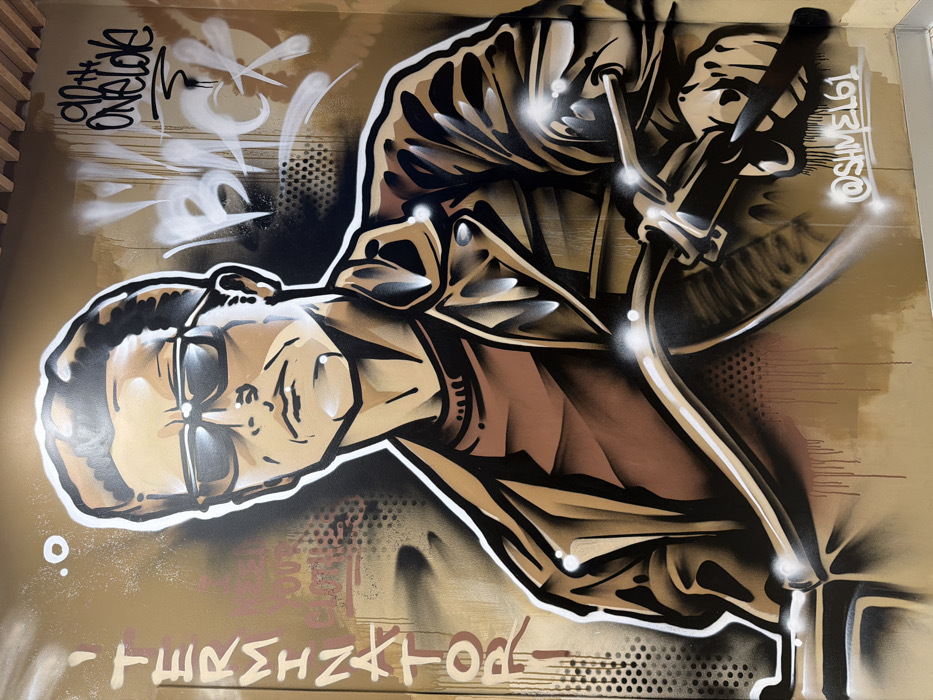 - "A large, stylized graffiti mural of a male figure resembling Arnold Schwarzenegger as the Terminator is depicted on a light brown/tan wall in Rostov-on-Don, Russia" by FM-eknjo2, licensed under CC BY 4.0