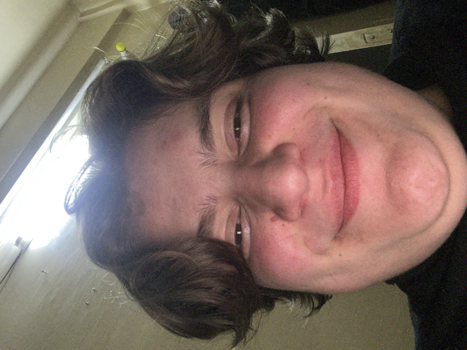 - "An upside-down selfie depicts a person with fair skin, brown hair, and a slight smile" by FM-NiDCC3, licensed under CC BY 4.0