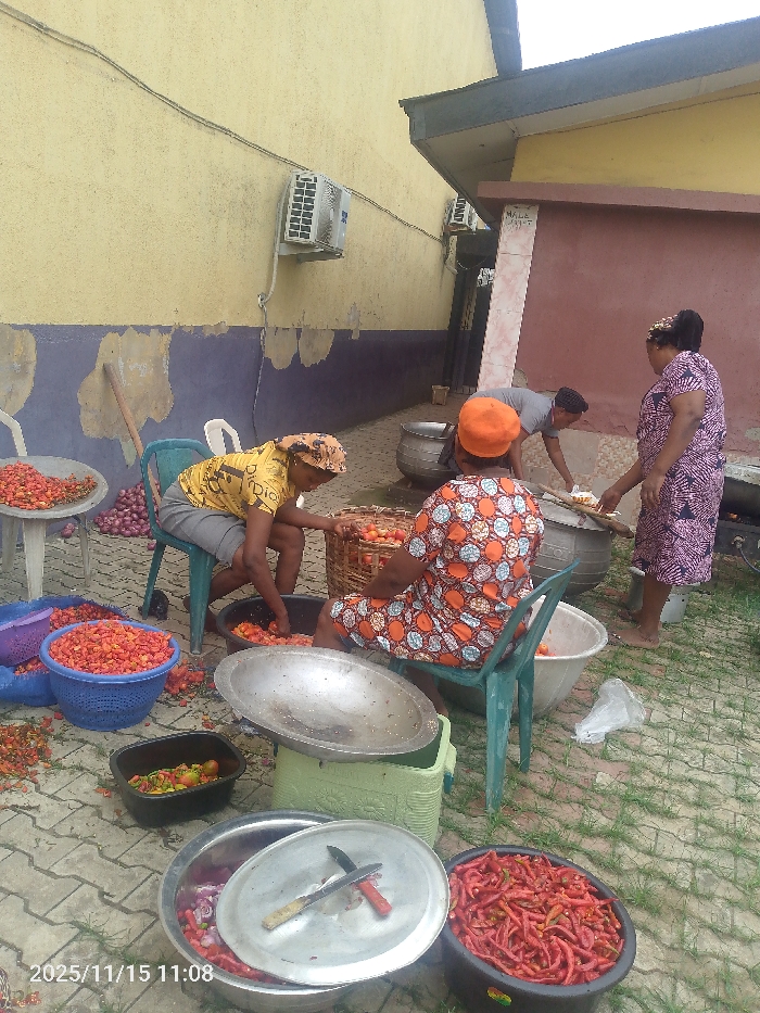 - "The image displays an outdoor food preparation scene within Lagos, Nigeria, photographed on 2025/11/15 at 11:08" by FM-uBQpL2, licensed under CC BY 4.0